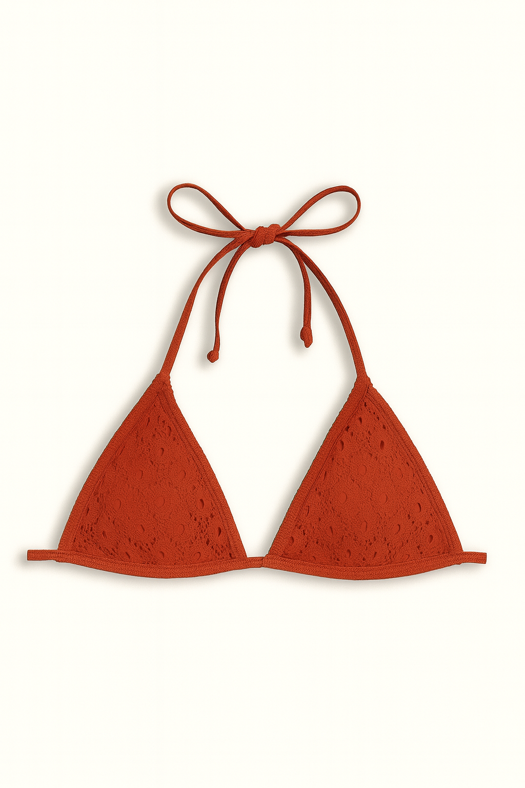 Burnt Red Bikini Set with Eyelet Layer & Crochet-Style Shorts
